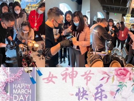 此次活动咖啡师现场为大家讲解咖啡制作流程及咖啡拉花要点,,,并示范制作咖啡。。伴随着咖啡的香气,,女职工们纷纷主动来到咖啡机前,,,按照咖啡师讲解的步骤,,亲身体验制作咖啡和咖啡拉花的乐趣。。。完成咖啡制作后,,每人可以领取一份下午茶,,,在享受美味下午茶的期间,,,调酒师现场还为各位表演了花式调酒。。