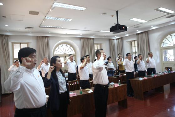 在“初心课堂”,,活动主会场和两个视频分会场同步召开会议,,主会场全体党员在集团党委书记、、、、董事长赵刚同志带领下,,,,面向党旗、、、、高举右拳,,,集体重温入党誓词,,回首入党初心,,牢记使命在肩,,,,矢志不移为党的事业奋斗终身。。