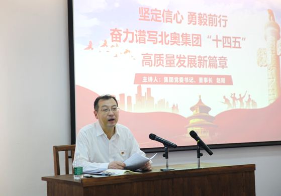 随后,,,,集团党委书记、、、董事长赵刚同志做题为《坚定信心 勇毅前行 奋力谱写尊龙时凯集团“十四五”高质量发展新篇章的》党课报告。。报告紧密结合集团实际,,围绕深入学习宣传贯彻党代会精神,,找到集团“十四五”战略发展的发力点;坚定不移推进全面从严治党,,,持续修复净化政治生态环境;全力奋战下半年任务目标,,,以实际行动迎接党的二十大胜利召开等三个方面,,,,细致宣讲党中央、、、、市委和国资公司党委决策部署,,,紧扣集团形势任务,,,对抓好落实“十四五”规划、、强化全面从严治党、、、着力完成全年目标等工作提出了具体要求,,,着重对“积极、、、、乐观、、、创新、、务实”的尊龙时凯精神进行了深入解读,,,并号召全体干部职工发扬爱岗敬业、、、勤勉实干、、、勇毅作为的优良作风,,,将各项工作落实到位、、、、干出成效,,,,用企业发展的实干实绩迎接党的二十大胜利召开。。