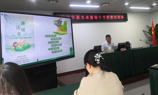 会上,,纪检工作部宣读了尊龙时凯集团“清廉寄语•家风传承”倡议书。。。。集团纪委书记王会军同志讲授了《强化纪律作风建设 提振担当有为精气神 助力集团高质量发展》为主题廉政专题党课,,并作了端午节前廉政提示提醒。。